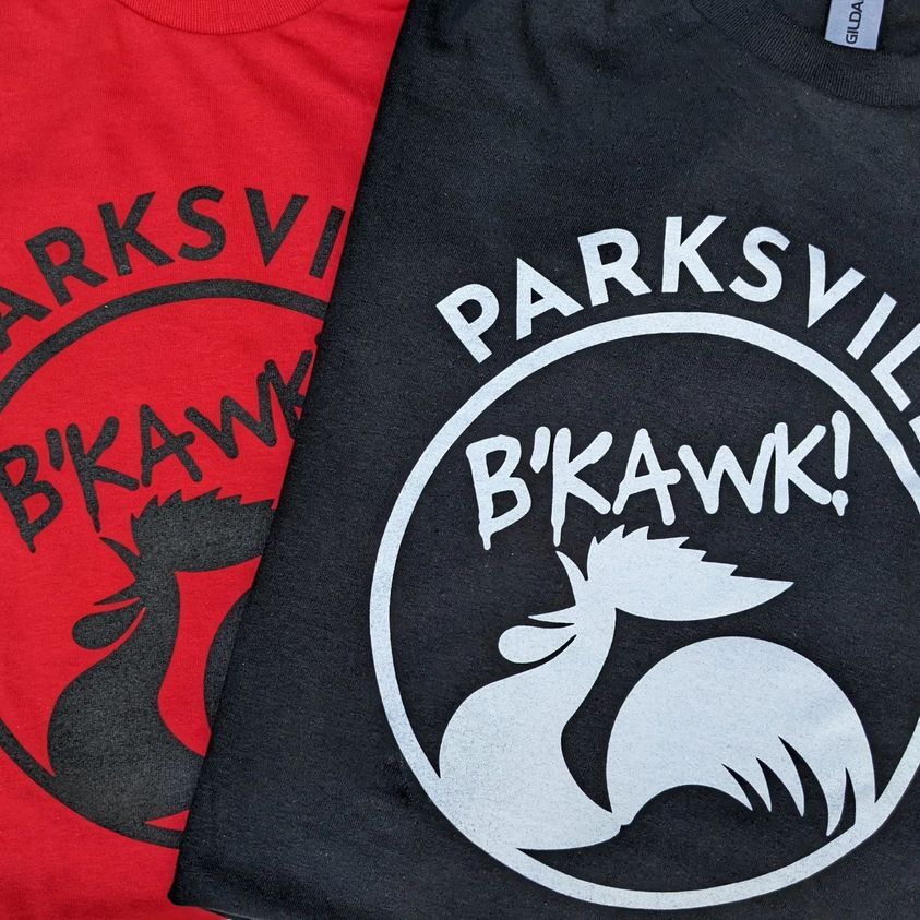 Van was running a booth with a small t-shirt printing setup, to make more B’Kawk shirts if needed, and to plug his own business. I was going to help him set up and whatever was needed, until I had to leave for PA. I’d forgotten that Van was the sort of musician who would enthusiastically throw together performers to play, unrehearsed, at this sort of thing, and had been drafted to play trumpet for the Chicken Dance for one of the kids events. Sure, why not?