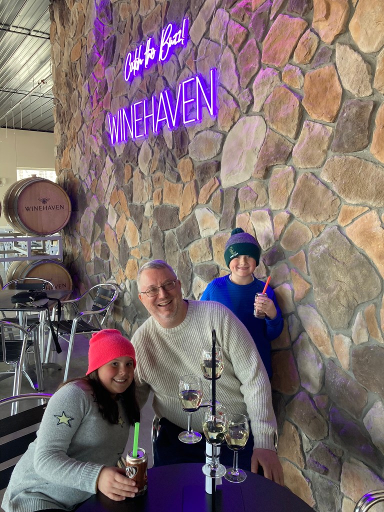 Then to lunch at a fun restaurant, and afterward to the Swedish bakery in Lindstrom, the next town over. Adorable town, yummy food. We then went to the history museum, which was mostly a gift shop, and to some other stores (I bought some much-needed dishtowels. In other news, I buy dishtowels now). And then to a winery, where the kids had root beers, Sam and Allie shared a wine slushy, and Uncle Eric tried a flight, which was enormous and served very elegantly in an iron tree.