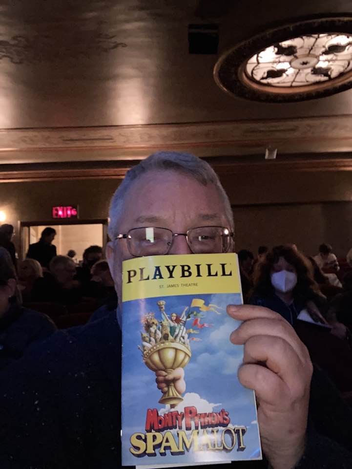 I am a Monty Python fan, certainly, and had enjoyed, but not loved, the show in its original Broadway run. This time we had a more diverse cast (Black men as King Arthur and Galahad, for instance), and some great names: James Monroe Iglehardt (Arthur), Tony winner for Aladdin’s Genie. Michael Urie as Sir Robin (this was his last week before going over to the Encores Once Upon a Mattress, and I’d wanted to see him), and Leslie Rodriguez Kritzer as the Lady of the Lake. (Did you see the last episode of Mrs. Maisel? She was Carol Burnett.)