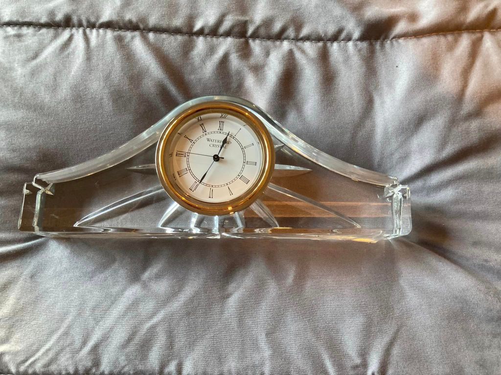 The Waterford clock (which I’m assuming works, but am getting a battery for) will look great on the mantel. The paperweight with the lighthouse is very cool and is 3D in the sense that if you turn it sideways, you still see the lighthouse and clouds, but in a different configuration. (I brought that into the office.) And I don’t know what I’m going to do with the atomizer, but I just loved the color and thought it was beautiful.