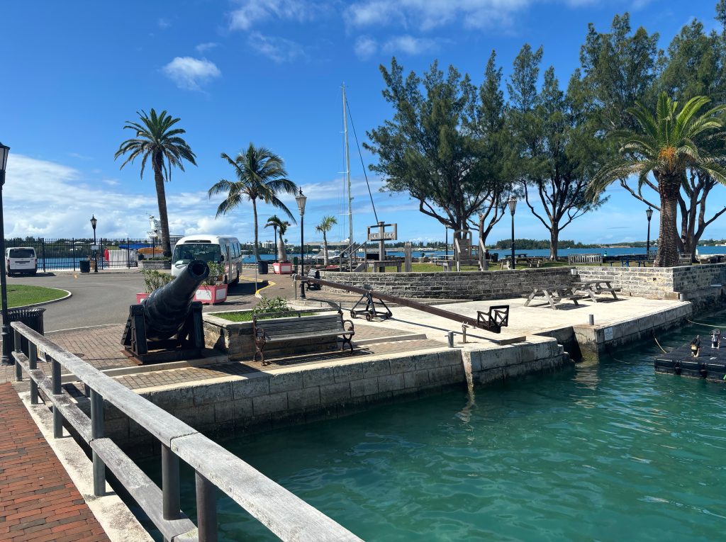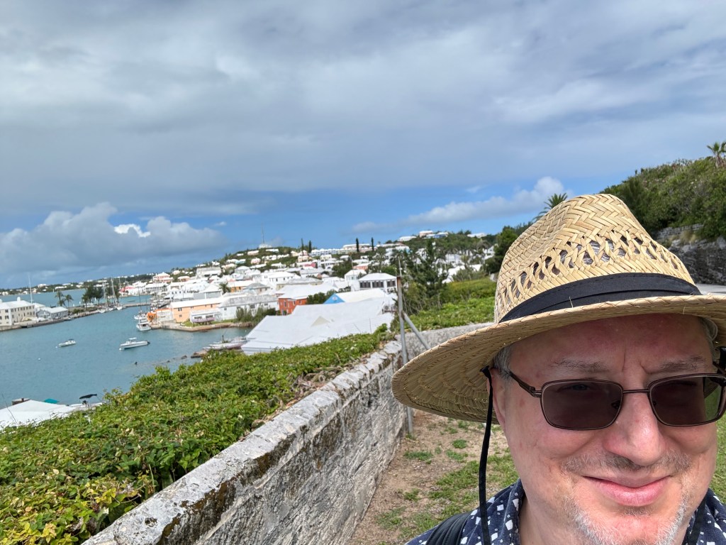Off the ferry – I’d reviewed my blog posts from 2006 and remembered kind of where the Hamilton bus station was, but used Google Maps to really find it. And got right on the 11 bus, which is what I wanted. The bus ride was really pleasant – I’d remembered this vaguely, but the bus is really the way to go, you see all sorts of things, they’re air conditioned and (depending on the line) often run frequently. And Bermuda is beautiful and you could see everything and it was a lovely day. And I got to St. George’s about 10:30. I’d thought the bus would stop at the town’s square, but it went up this hill through an industrial neighborhood and stopped there. Oop, should have gotten off one stop earlier… the bus driver told me I could just take the next bus back down, but I decided to walk, it was only about 10 minutes.