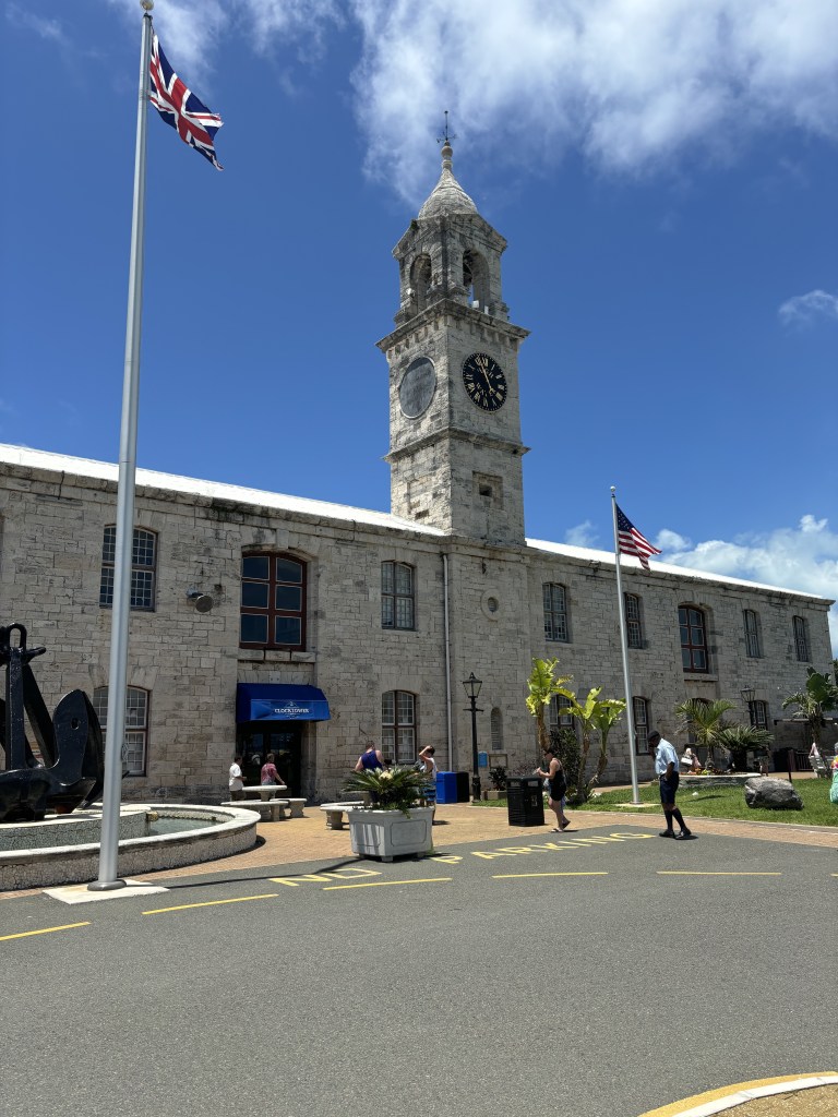 Got to King’s Square, walked around, took some pictures of the custom house and some other quaint stuff (and figured out that the “St. George’s Marina” was not where we’d stayed for 4 days in 1987, and never did find it, although didn’t spend a lot of time on that project). Went to the visitor’s center, walked around the shops, looked at t-shirts. One of the few memories I have specifically about St. George’s from 1987 was going into a posh English clothing store and buying a really nice blazer. That clothing store is still there! and I recognized it right away, so that was very cool.