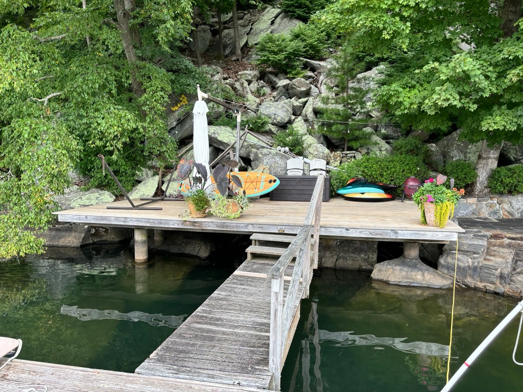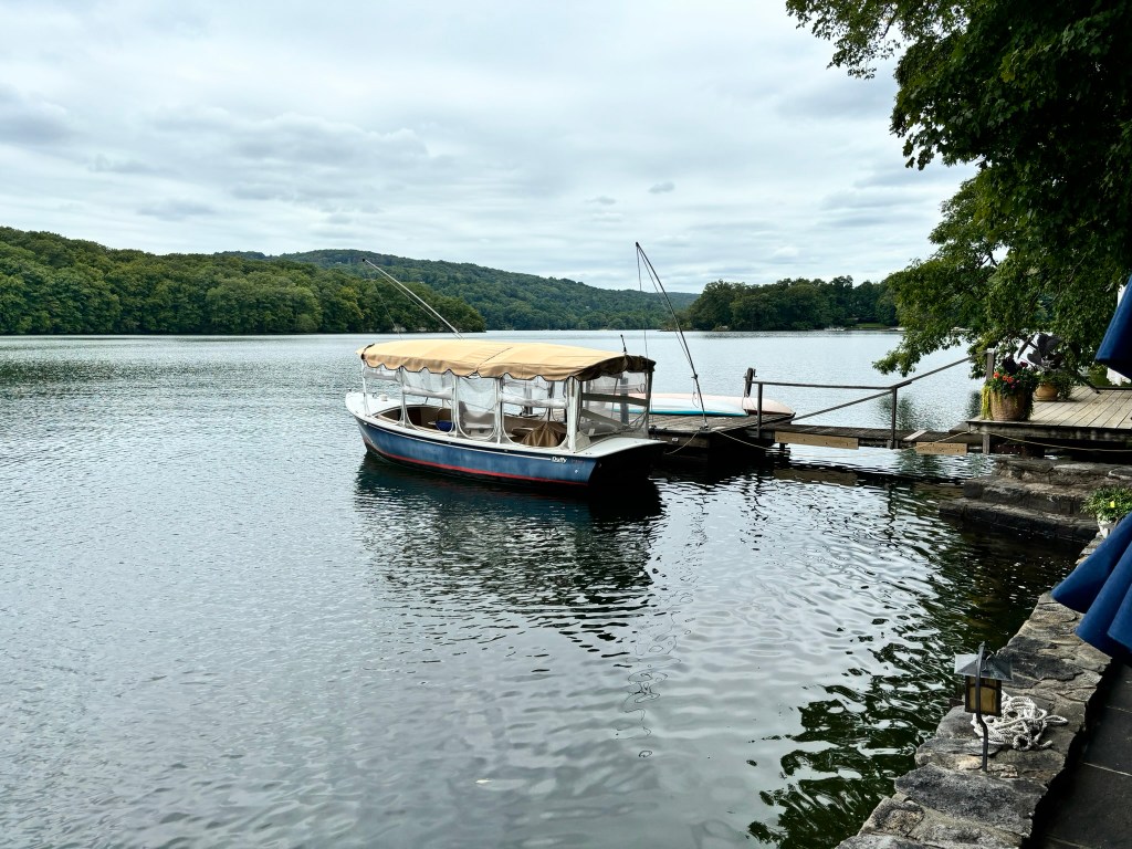 Patti’s friend Mary was a neighbor of hers from Rhinebeck, but now had boyfriend Matthew and they were spending most of their time at this lake house. The house (which was gorgeous), was up the cliff from the lake, but after you descended a bazillion stairs, you found yourself on a lakeside deck with a dock, a utility house, tables, chairs, a grill and a boat!