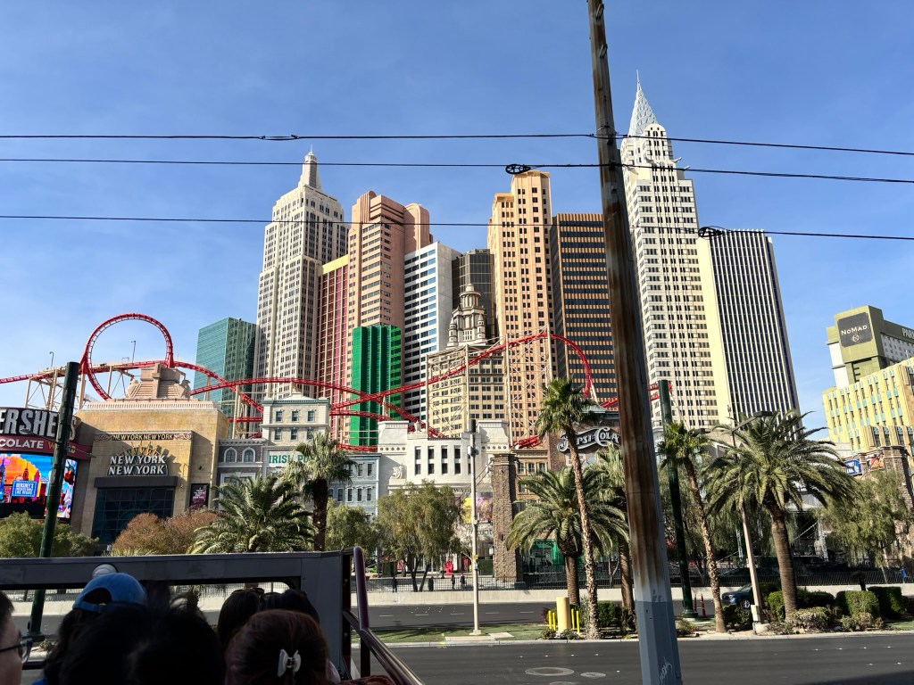 We went out of the hotel/casino to find the Big Bus stop, which wasn’t far, but more confusing than we thought. To CVS to buy sundries, then back to room. (I’m now realizing that we should have prepared to go out for the day when we went to breakfast. Just the journey to go back to the room in the hotel was a real slog). Once we did that, we were too late for the first Big Bus, but got the 2nd one at 10:30.