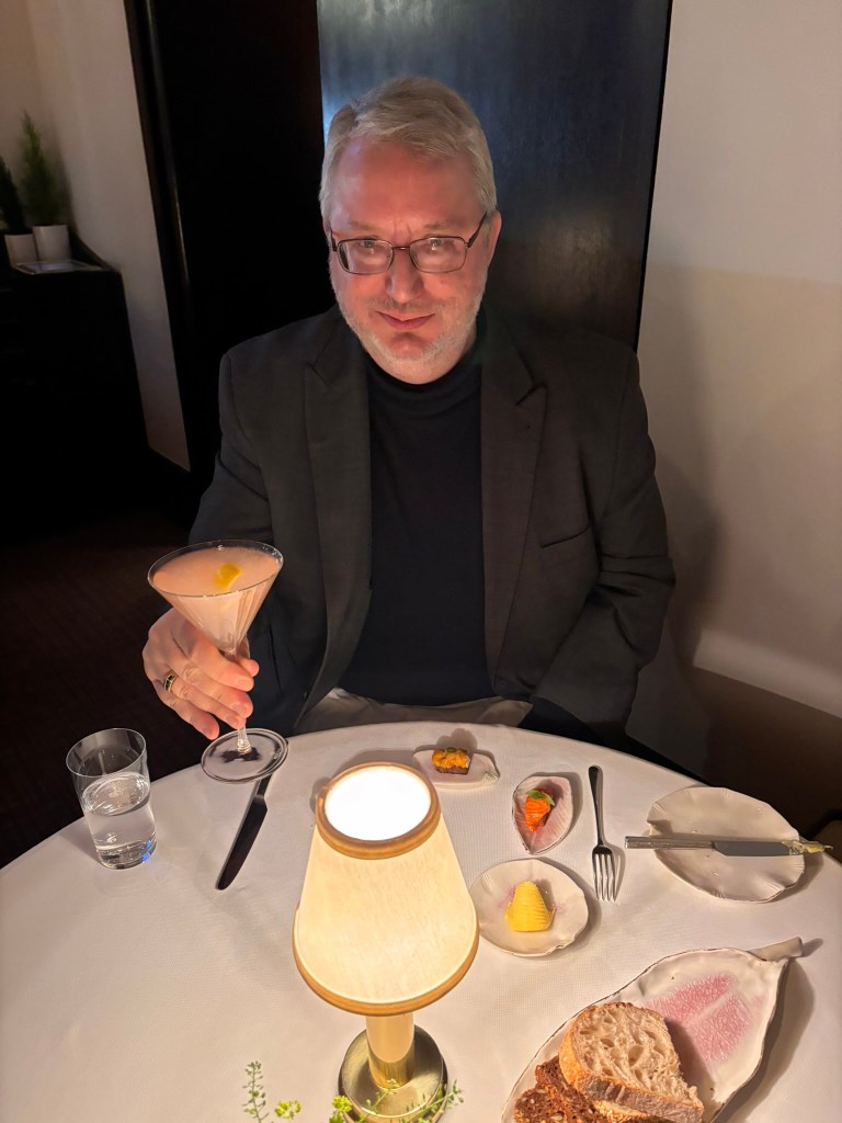 As I try to do at a nice restaurant, I stayed in the moment – no Kindle reading and very little phone interaction for this meal. I don’t remember what our options had been the first time, but at the moment they were only doing tasting menus. I got the ‘omnivore’ six-course menu. My waiter, Ed, was totally lovely and fun and of course asked me if I was in from out of town (‘no, I live in Queens’) and what the special occasion was. “Well, it’s the 30th anniversary of the first date with the man who eventually became my husband. Unfortunately, he’s now my late husband…” He was properly sorrowful and kind about it.