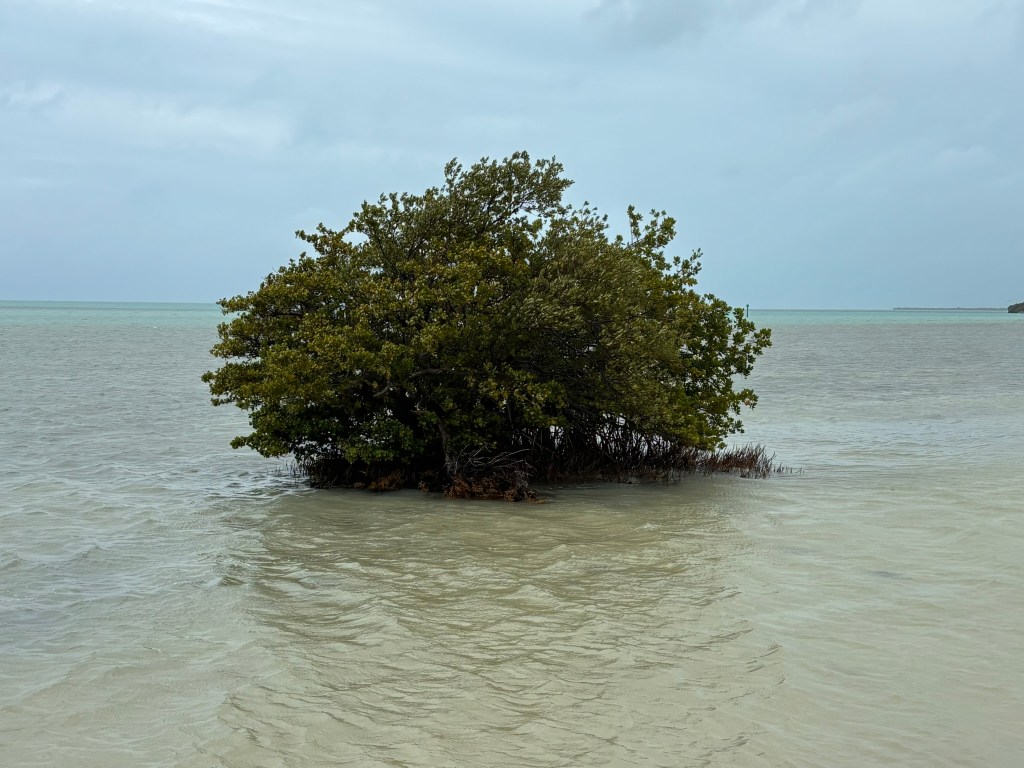 Stop 7 was a restaurant that the guidebook had said was fun, Oceans305. But it didn’t say, or I didn’t read clearly, that it was a beachfront restaurant in a gated RV community – so I had to go through a gatehouse and get a dashboard plaque, and then it wasn’t clear how to get to the restaurant. I parked and walked through a huge sea of giant RVs (much like I had done at one point at Pennekamp the day before – I don’t know anything about the RV community, but I guess it’s a real thing down there). Found the restaurant, which would have been delightfully situated if it hadn’t been cold and rainy. As it is, the tiki hut was enclosed in plastic to protect from the elements, but they were still serving.