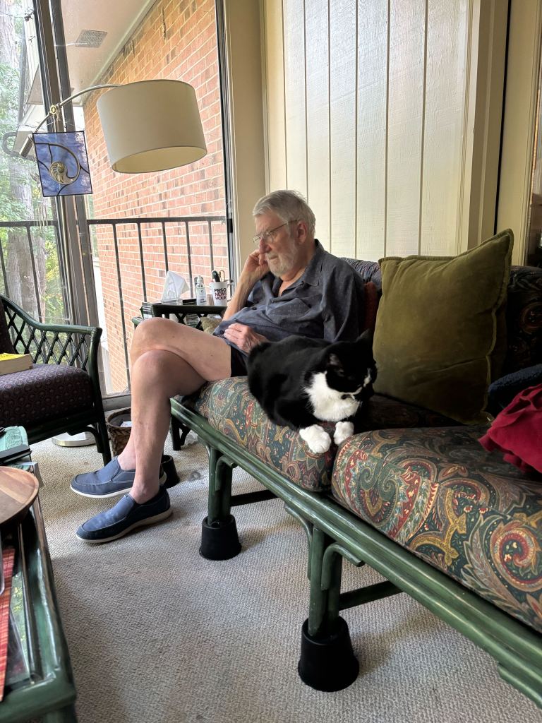 So good bonding time, with each of them. Dad and I hung out on his porch (which overlooks a golf course) a lot, joined by Julian the cat.