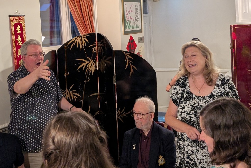 There are toasts to absent friends and to Gilbert & Sullivan and the music director (me this year) leads the crowd in singing “Hail, Poetry”.