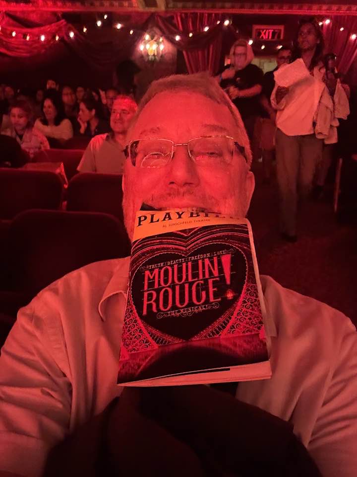 I’d bought tickets to the Broadway production of Moulin Rouge! (exclamation point is part of the title) We hadn’t gotten around to seeing it, and I’d forgotten that it had taken most of the Tonys when it opened pre-COVID. Charles (and I) had loved the movie, so I thought that would be a fun choice, and also Wayne Brady and Taye Diggs are in the cast now. I’d managed to get a nice aisle seat from the box office on Thursday.