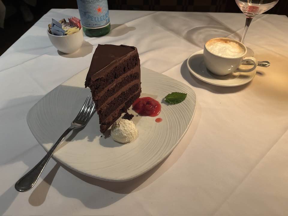 As soon as I’d decided to go to The Palm, I knew I wanted to get their chocolate cake, even if I had to have them just wrap it up to take home. I’d never had it before, because every time C and I went, by the time we got to dessert, I was too full. But I was determined, dammit, and got that with a cappucino.