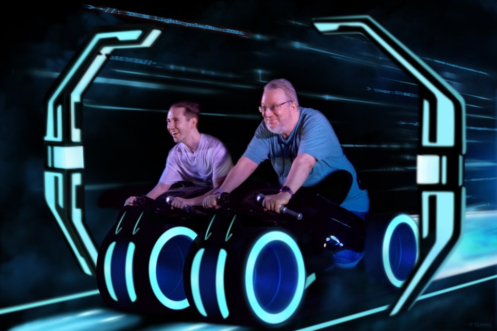 Saturday! Magic Kingdom day! I’d bought a two-day ‘park hopper’ pass, so theoretically I could go to any of the four parks, but Magic Kingdom was what I’d planned. The way you jump the line at DW is called “Lightning Lanes”. You could buy a set of 3 timed entrees (one each) to a selected set of rides, you could buy 1 timed entree to one of the more special rides, or you could buy a ‘premier pass’ that allowed you (I think) 1 line-cut for any ride. This last was so expensive it was off the table, but it meant for the others I had to do some planning. I think the ‘set of 3’ rides for MK weren’t that interesting to me, so the only one I bought was for the Tron ride, with a mid-afternoon time slot.